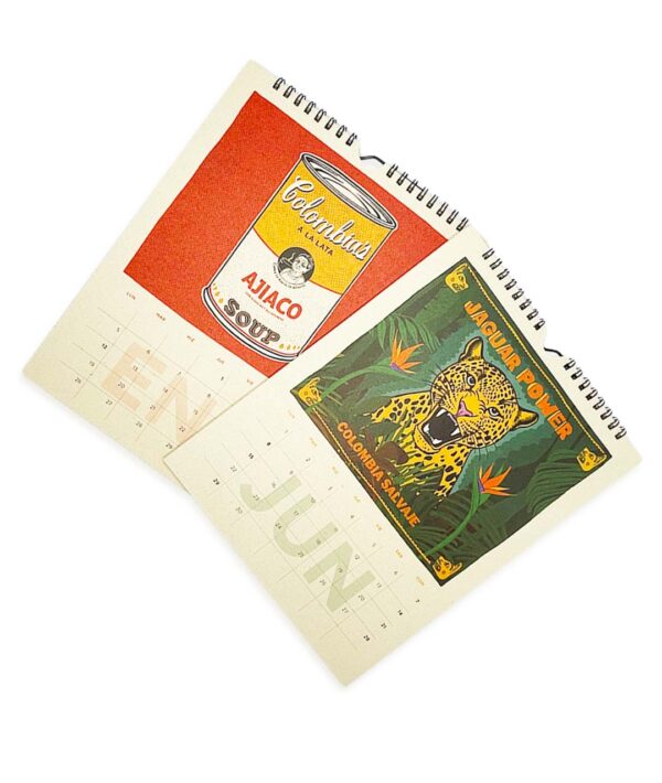 Descubre este calendario ilustrado estilo pop art, inspirado en la biodiversidad y los colores de Colombia. Con ilustraciones del jaguar, el cóndor, el café y frutas tropicales, este calendario colombiano 2025 está impreso en papel ecológico Earth Pack de 295 g, mide 20 x 26 cm e incluye gancho metálico para colgar. Un diseño vibrante, sostenible y perfecto para decorar tu espacio. 🎨✨