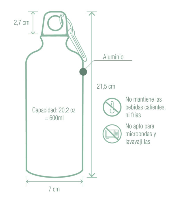 - Capacidad: 600 ml, lo suficiente para mantenerte hidratado durante múltiples aventuras.